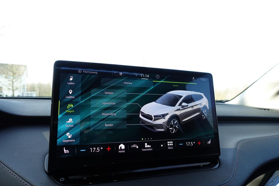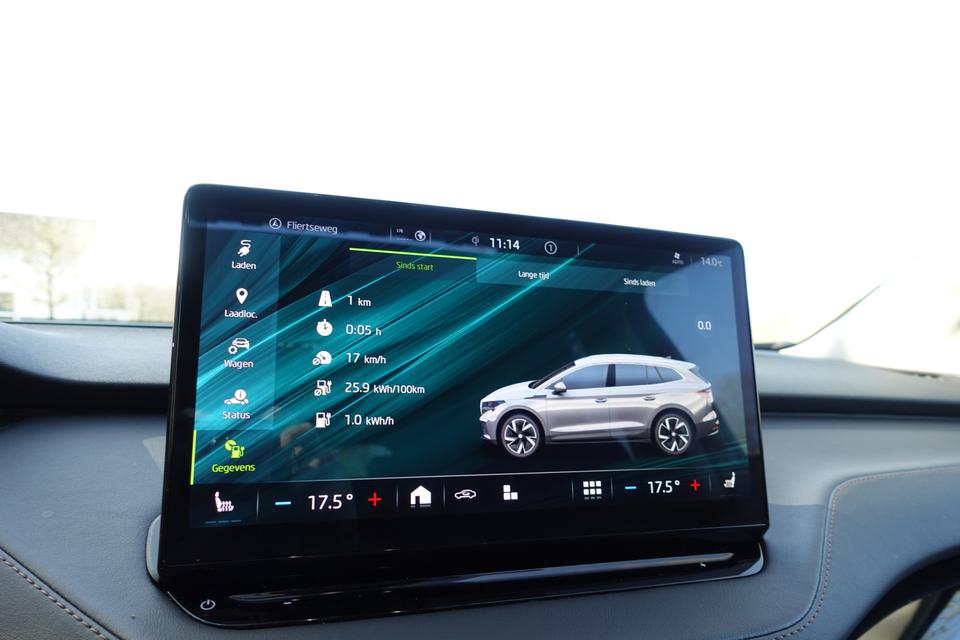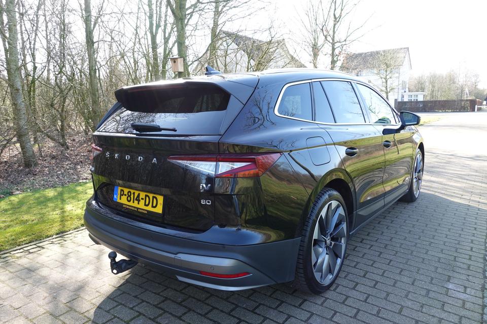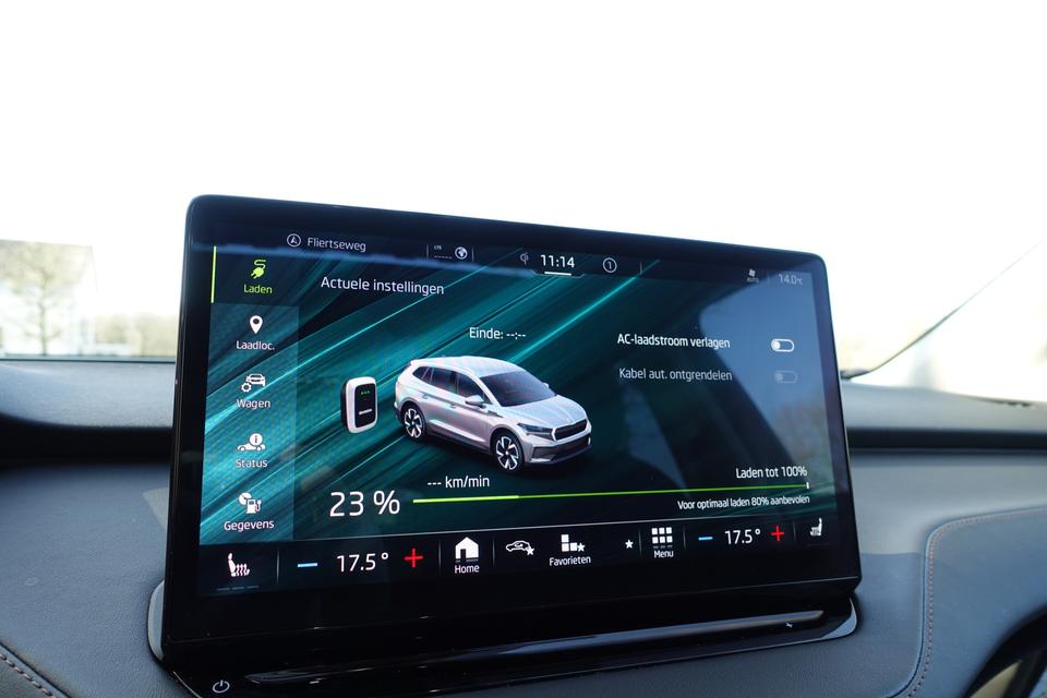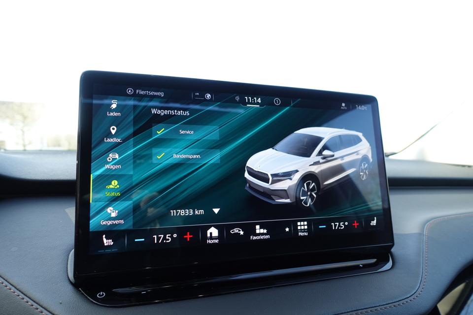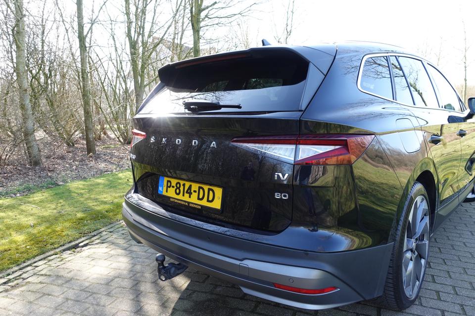 Verbruik combinatierit: 216 kWh/100kmHightech elektronica en emissievrij rijden komen samen in de ŠKODA Enyaq iV. Deze auto biedt een onvergelijkbare rijbeleving dankzij de volledig elektrische aandrijflijn. Stil en stevig optrekken zonder extra uitstoot? De elektromotor zorgt ervoor! Een krachtige motor geeft deze auto zijn sportieve prestaties. Ze zeggen weleens dat stijlvol en handig niet gauw samengaan. In dit geval wel: kijk maar naar het lederen interieur en de elektrisch bedienbare achterklep. U past de stoelen moeiteloos aan, ze zijn elektrisch in te stellen en hebben bovendien een geheugen. Zelfs als het buiten ijzig koud is, kunnen zowel de bestuurder als de passagiers op de achterbank snel opwarmen, dankzij de verwarmbare stuurwiel en de achterbankverwarming. Vergezichten krijgen een extra dimensie door het glazen panoramadak. De koplampen met matrix LED-verlichting geven daglichtkwaliteit zonder tegenliggers te hinderen. Ook 19 inch lichtmetalen velgen, aluminium dakrailing, donker getint glas achter, in delen neerklapbare achterbank, LED-achterlichten en buitenspiegels met verlichting zijn aan boord.